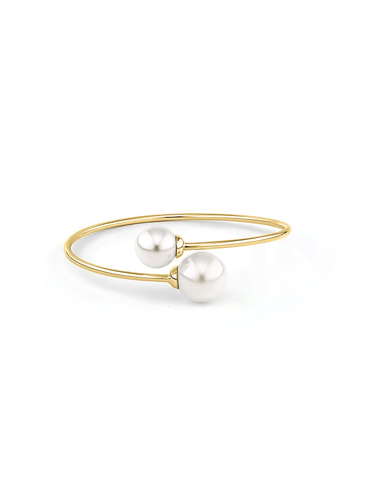 The perfect complement to any classic look, this bangle boasts a high-shine finish with two pearl accents of slightly different sizes, adding a distinctive touch of elegance.
