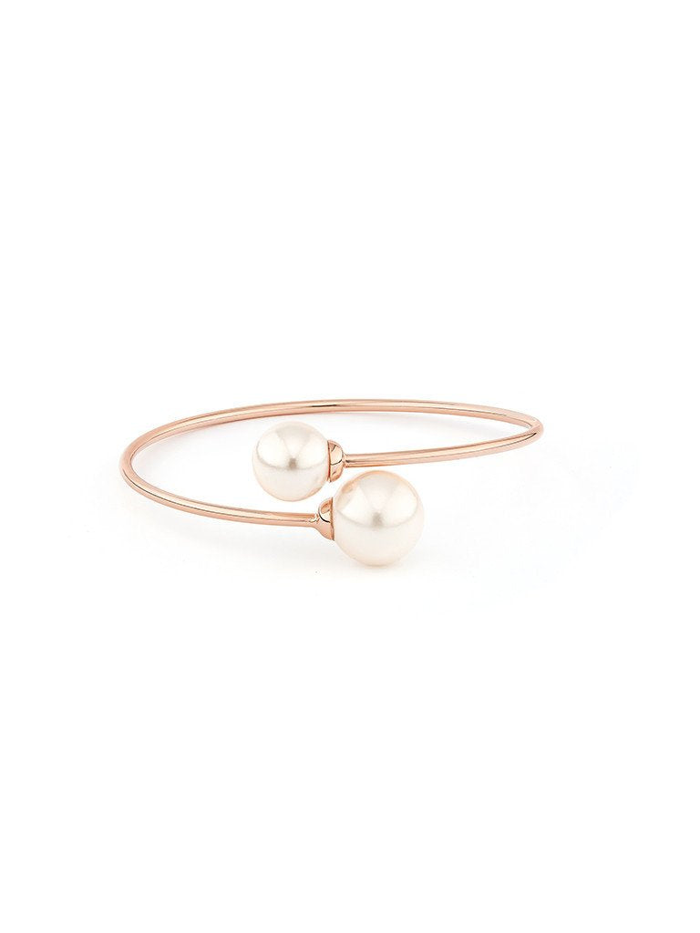 The perfect complement to any classic look, this bangle boasts a high-shine finish with two pearl accents of slightly different sizes, adding a distinctive touch of elegance.