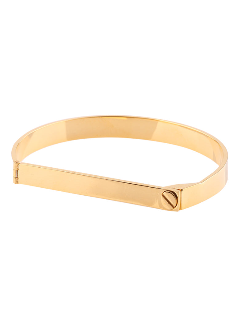 Featuring a mini screwdriver to unlock its hinged design, wear it solo or stack it with other arm candy for a bold look.