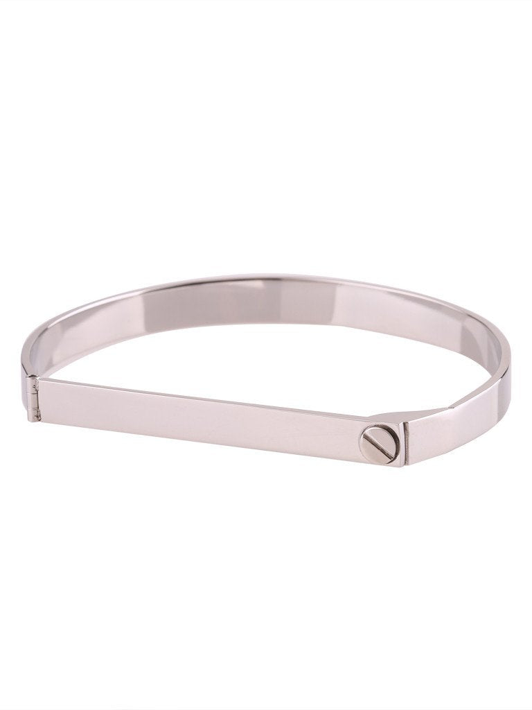 Featuring a mini screwdriver to unlock its hinged design, wear it solo or stack it with other arm candy for a bold look.