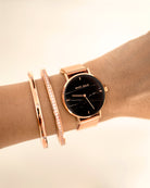 This exquisite timepiece features a 34 mm rose gold case paired with a matching rose gold mesh strap, offering a harmonious blend of warmth and elegance.