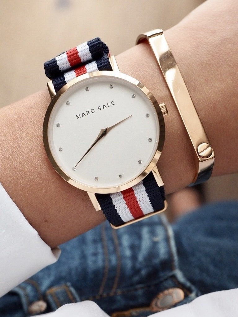 The Brillance True Blue Classique brings a touch of genuine Australian character to your wrist with its interchangeable blue, white, and red fabric strap.