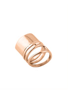 The 18K plated ring boasts a chunky feature band that melts and wraps effortlessly around the finger, creating a deep set and desirable statement piece.