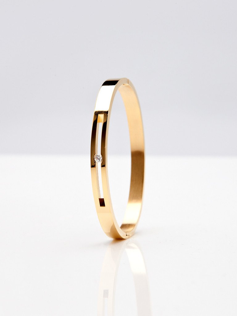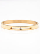 An updated take on a classic design, this sophisticated bangle features a slim profile and a chic cut-out detail that showcases a luminous cubic zirconia.