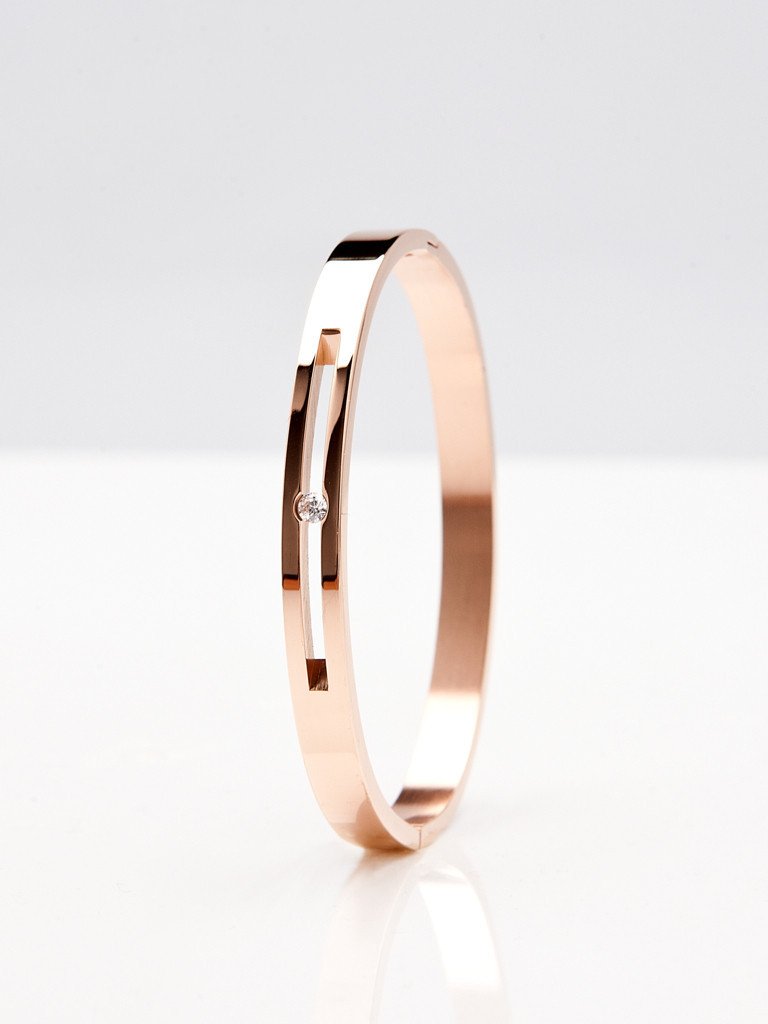 An updated take on a classic design, this sophisticated bangle features a slim profile and a chic cut-out detail that showcases a luminous cubic zirconia.