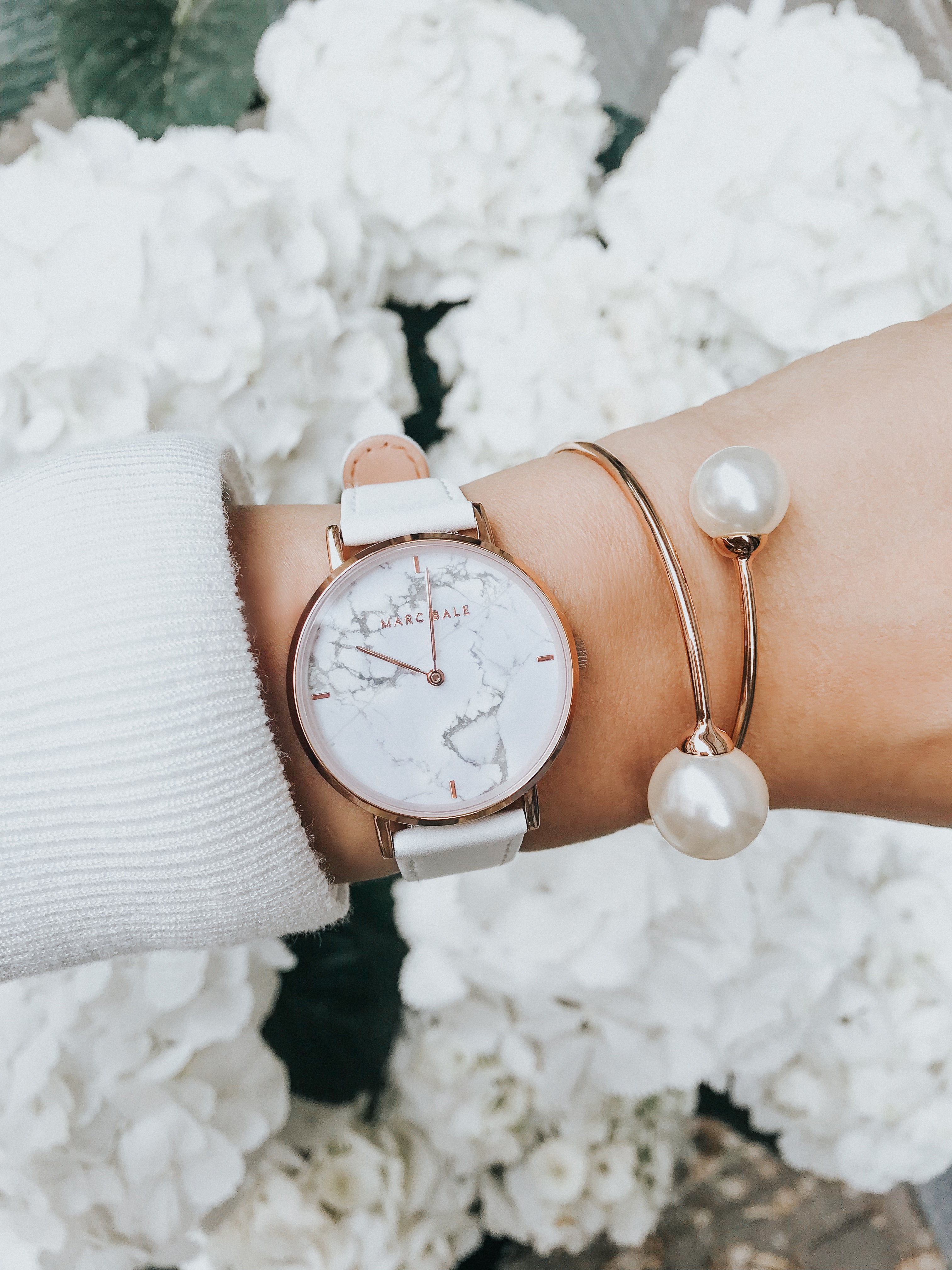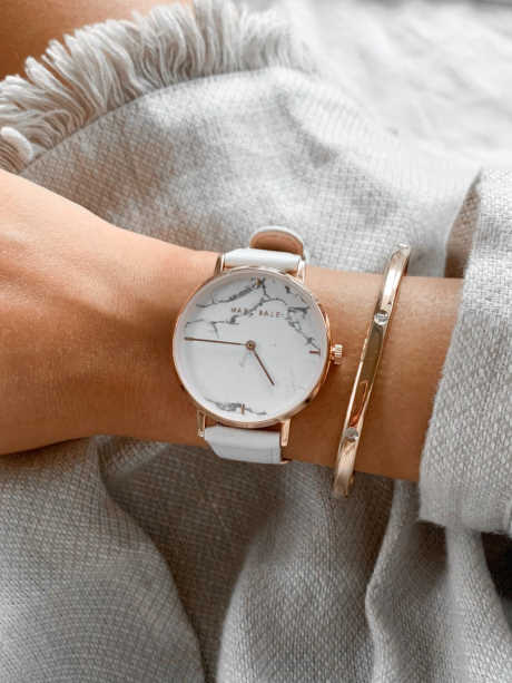 The watch is further enhanced by elegant baton-style hands in rose gold, complemented by minimalist hour markers at the 12, 3, 6, and 9 positions. This minimalist design allows the exquisite marble dial to take center stage, making it a timeless addition to your collection.