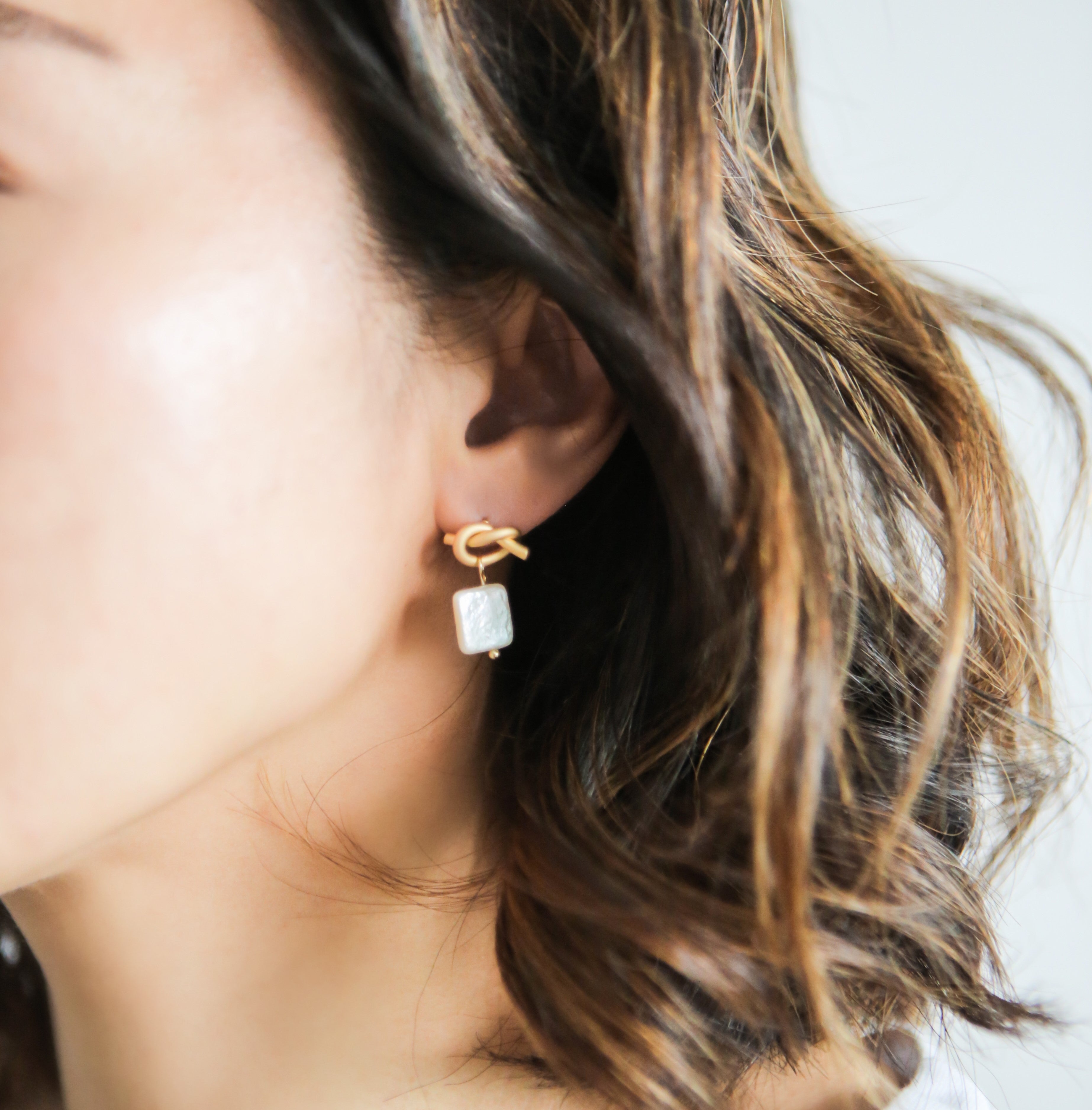 These delicate earrings break from pearly tradition with their rare and gorgeous square shaped pearls, balanced by delicate gold detailing. There's no limit to the number of looks you could compliment with the subtle femininity that these beauties bring to the party.