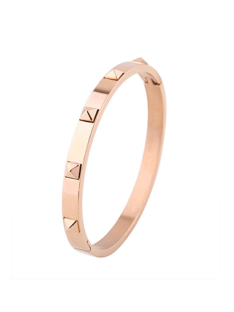 Sleek, bold, and contemporary—this bangle with striking pyramid studs is crafted to elevate any ensemble with ease.