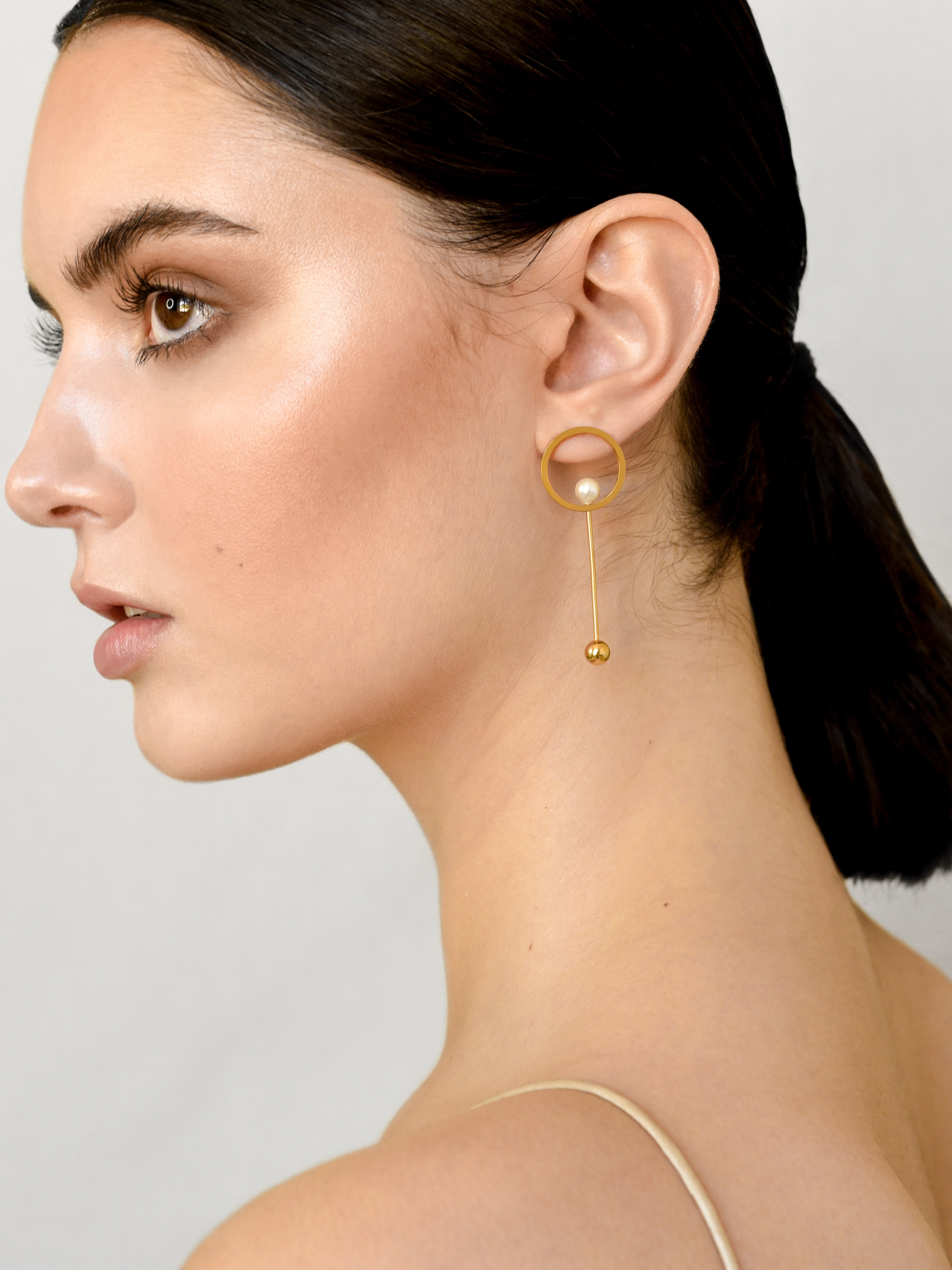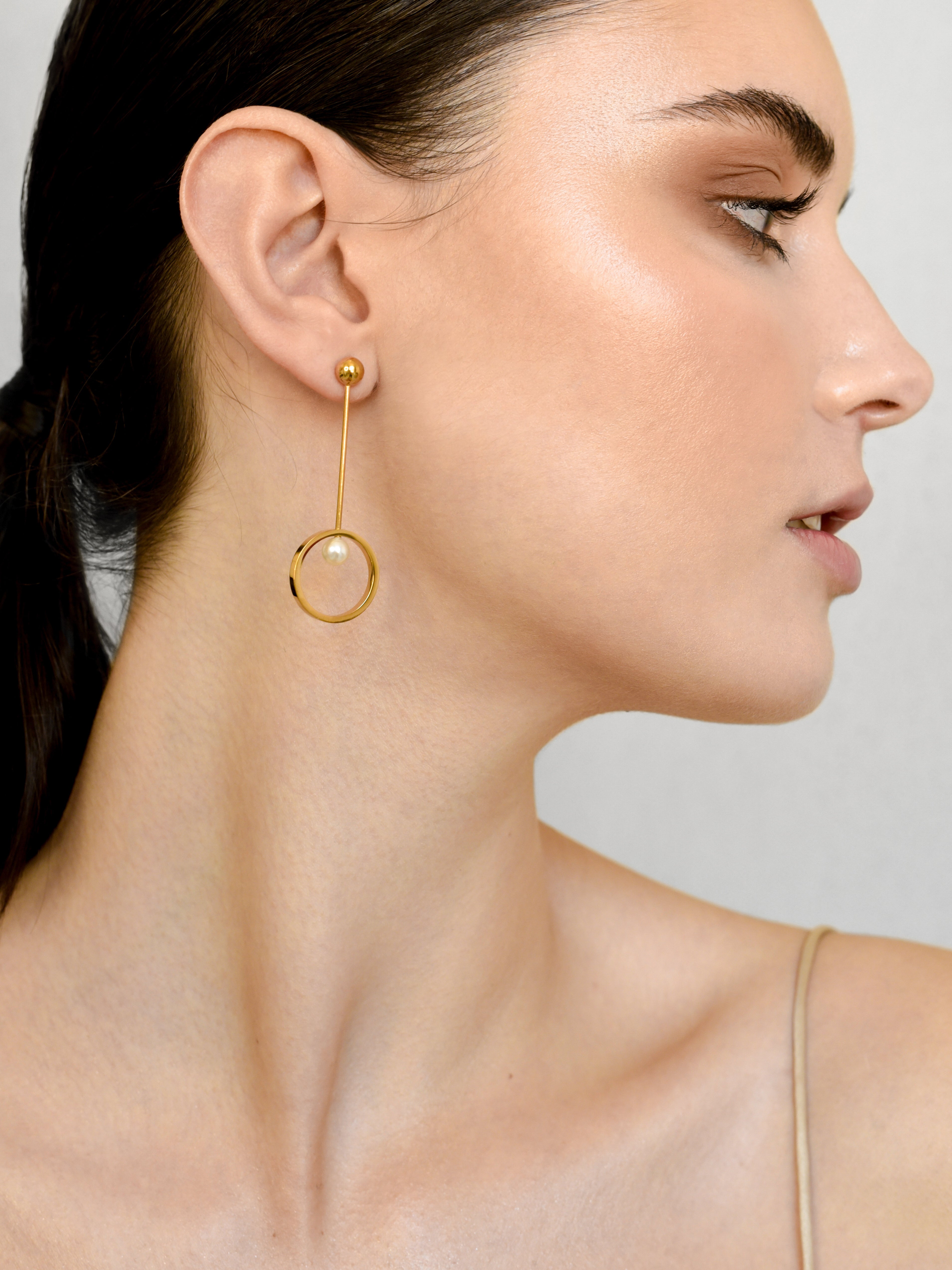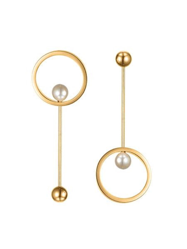 Hanging from opposite ends, these earrings feature a distinctive pendulum-style design with a pearl in the center, guaranteed to become a firm favorite among your jewellery collection.