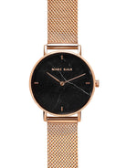 The highlight of the Gaia Crépuscule is its genuine black marble dial, subtly veined with white. Each marble dial is one-of-a-kind, showcasing nature's unique patterns, making every watch truly distinctive. The deep, rich tones of the marble dial add a touch of mystery, perfectly balanced by the luminous rose gold elements.