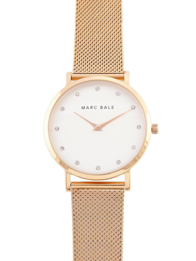 The Brillance Petite watch by Marc Bale features an elegantly adorned eggshell white dial with radiant Swarovski crystals. This exclusive design enhances our signature large twelve-index dial, giving it a fresh and luminous appearance, making it suitable for both daily wear and formal occasions.