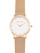 The Brillance Petite watch by Marc Bale features an elegantly adorned eggshell white dial with radiant Swarovski crystals. This exclusive design enhances our signature large twelve-index dial, giving it a fresh and luminous appearance, making it suitable for both daily wear and formal occasions.