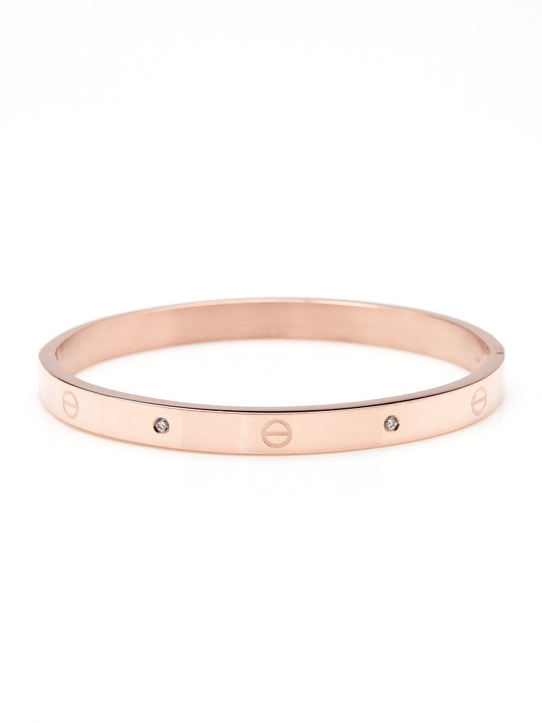 Designed with iconic screw-head accents and two brilliant cubic zirconia stones, this bangle brings a refined and modern aesthetic to any occasion.